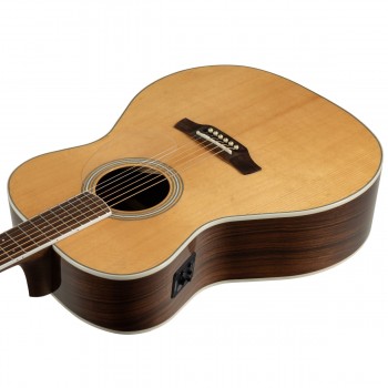 Sitka spruce brings brightness, dynamic headroom and excellent responsiveness, while Pau Ferro adds tight low-end definition, shimmering highs and a sweet, singing midrange. Together — helped by the ultra-thin UV finish — they produce a lively, resonant voice that feels boutique in its tonal sophistication. Whether you’re recording, performing or writing, this guitar delivers a rich and articulate sound that sits beautifully in any mix.
