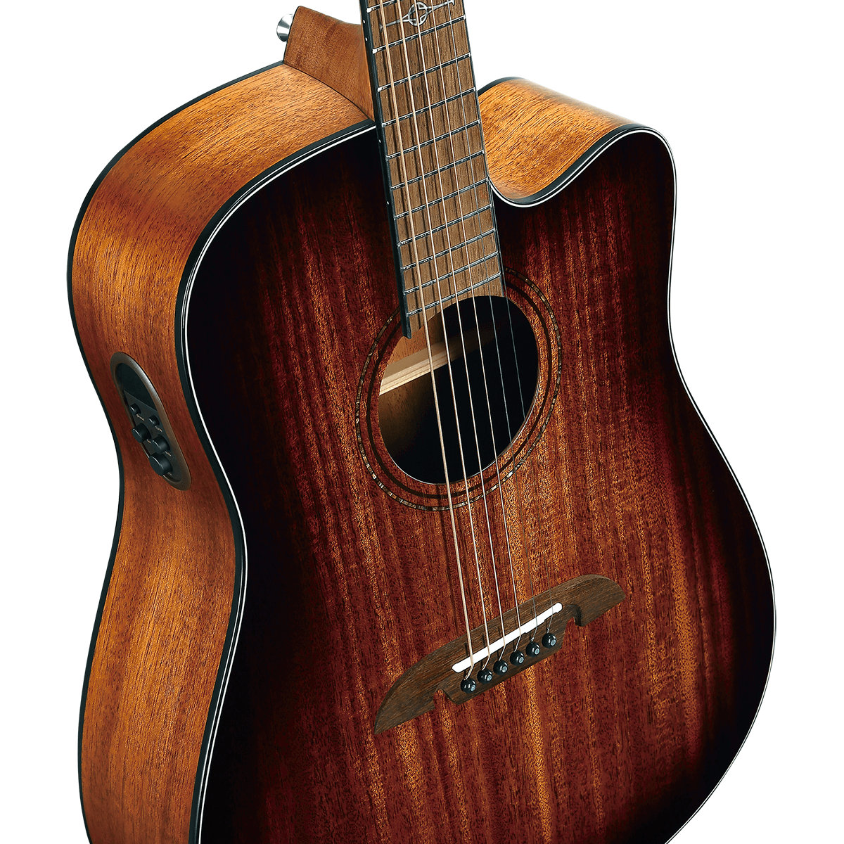 The Alvarez AD66ce Artist Series AD66ce in Shadowburst takes the bold dreadnought platform and wraps it in rich, all-mahogany warmth. Designed for players who love strong midrange presence, woody character and a connected feel under the fingers, this is a guitar with serious personality.