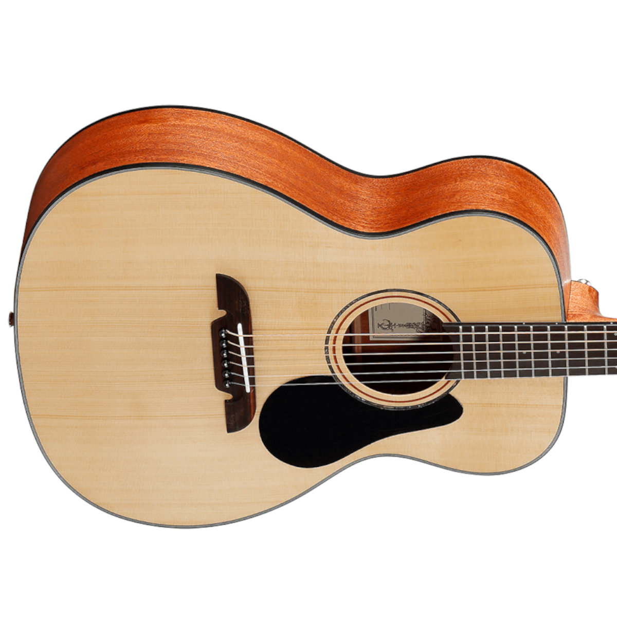 The African mahogany neck joins the body at the 14th fret and is paired with an Indian Laurel fingerboard featuring subtle decal and ABS inlays. With 21 frets, a bone nut and saddle, and a Bi-Level Indian Laurel bridge, the AF30 offers smooth playability, reliable intonation and strong sustain.