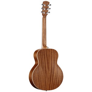 The Little Jumbo shape offers a comfortable playing experience while maintaining excellent projection. The African mahogany neck and Indian laurel fingerboard with MOP and acrylic inlays provide a smooth, stable feel, while the Bi-Level Indian laurel bridge improves string break angle and tonal transfer. A bone nut and saddle enhance sustain and clarity, and chrome closed-gear tuners ensure reliable tuning stability.