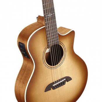 The Alvarez ALJ2CE Little Jumbo in Shadowburst blends portability, projection and stage-ready practicality into one seriously appealing package. With its rich burst top and balanced tonal character, this is a small-bodied acoustic-electric that looks as good as it sounds.