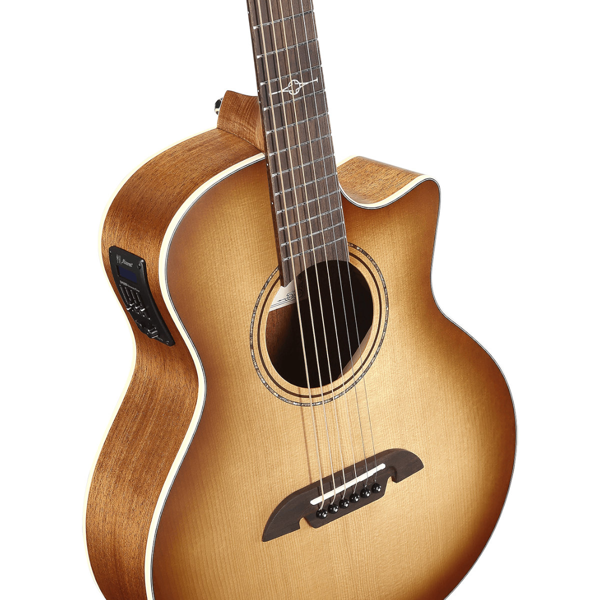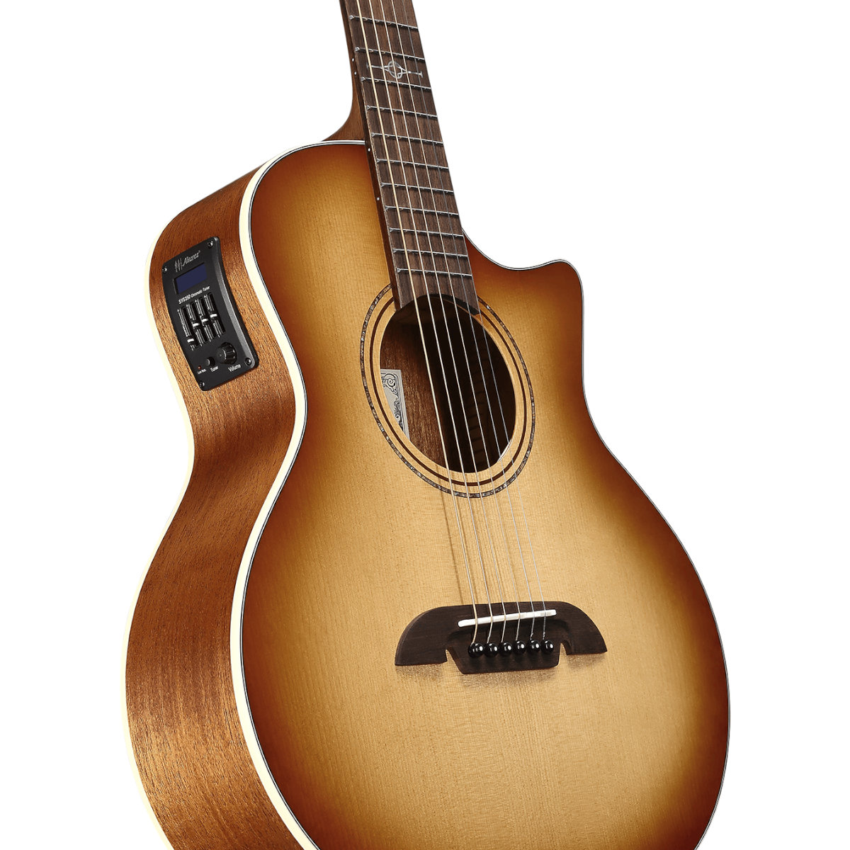 Built around a solid A+ Sitka spruce top, independently selected and graded for clarity and responsiveness, the ALJ2CE delivers impressive articulation and dynamic range. Sitka gives you crisp highs and clean projection, while the African mahogany back and sides add warmth and depth without overwhelming the natural clarity of the top.