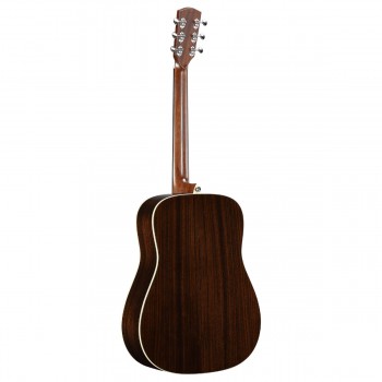 The back and sides are crafted from solid East Indian rosewood, hand-selected and bookmatched for tonal balance and visual symmetry. Rosewood brings deep piano-like lows, shimmering highs and complex overtones — the classic dreadnought sound for players who want authority, projection and harmonic richness.