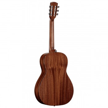 Built entirely from solid African mahogany — top, back and sides — the MP66e produces a warm, woody voice with pronounced midrange presence and a clear, controlled bass response. Mahogany’s natural compression gives notes a rounded edge and strong fundamental focus, making this parlour especially rewarding for fingerstyle, blues, folk and slide players.