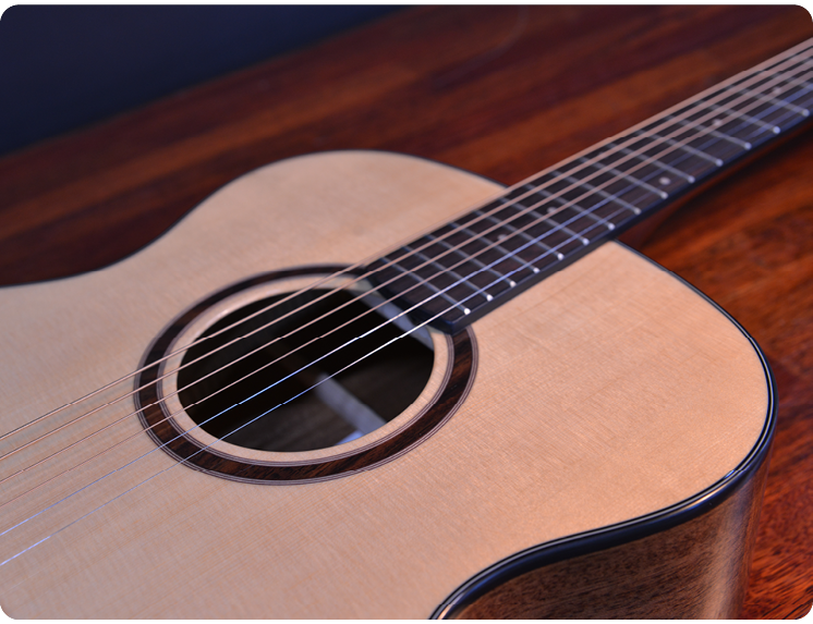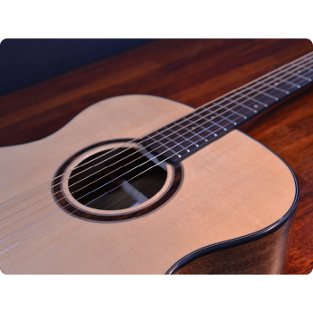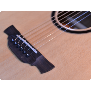 Its mid-sized orchestra body strikes that perfect balance between comfort and projection. Whether you’re fingerpicking or strumming, it offers strong note definition and a naturally open voicing that suits singer-songwriters, folk players, and intermediate students alike.