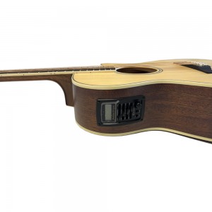 That maple body brings out crisp mids and tight lows, lending definition and sparkle that’s especially welcome for fingerstyle or live acoustic work. Paired with the solid spruce top, it gives you fast response, note separation, and a bold dynamic range. It’s the kind of tone that cuts through a mix without overpowering it — ideal for singer-songwriters or anyone who wants their playing to shine with articulation.