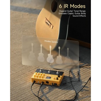 The “APL” stands for Acoustic Preamp Looper, and that tells you what it’s trying to achieve: a pedal that isn’t trying to mask your instrument, but bring out its voice while giving you modern tools to shape it. You get 6 built-in IR body simulations so you can emulate different guitar body types — think brighter parlour tones, warm dread, balanced stage voices — without needing to mic your guitar. That means better tone direct to PA or amp, and more options at your feet.