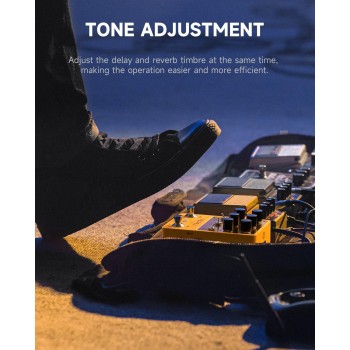 You control the delay time, feedback, and mix to carve echoes that feel alive, not mechanical. The reverb side delivers hall, plate or shimmer‑style tails, and you can tweak decay, tone, and level to shape the reverb envelope. The pedal lets you dial in how much of your original dry signal remains in front, so your core tone stays audible even in the deepest ambience.
