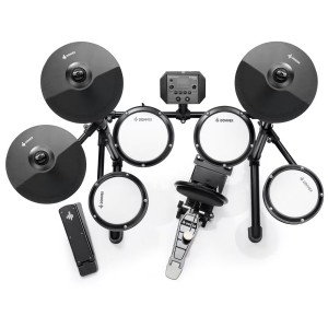 Sound-wise, the brain is packed with 180 drum and percussion voices, 15 preset kits, and 30 backing tracks to play along with. It’s all housed in a user-friendly module that doesn’t take a degree in menu-diving to understand. Built-in coaching and learning features are ideal for younger players or anyone brushing up on their timing and technique.