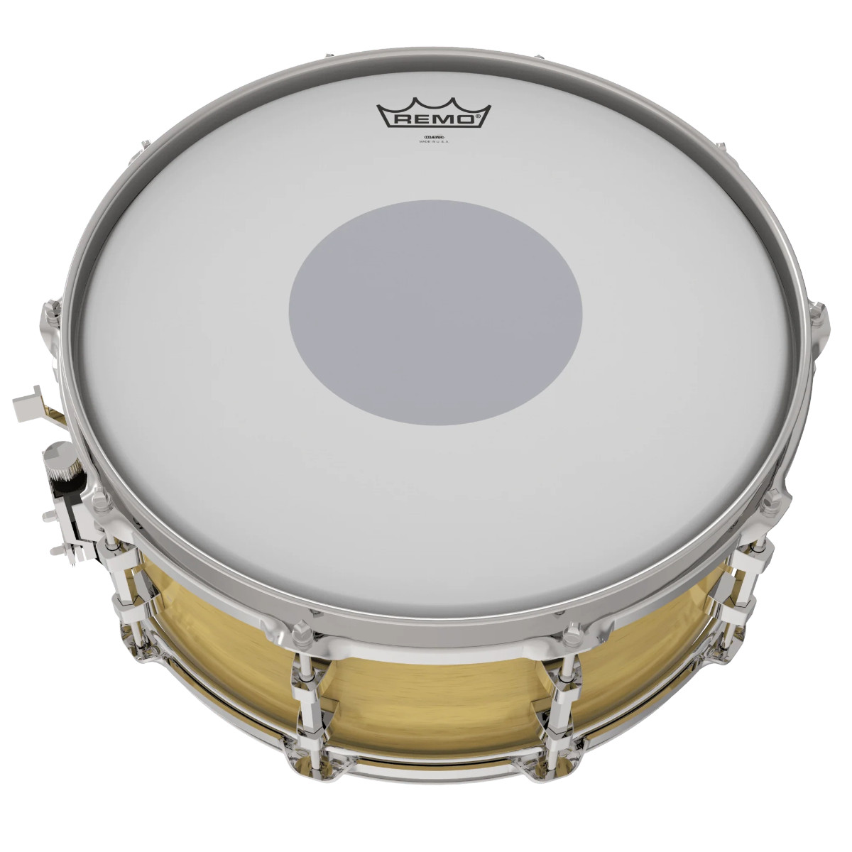 Remo Emperor X Coated 14'' Drum Head is a high-quality head for your snare drum, featuring a tough coated design that offers warm, focused tones with unbeatable durability and projection. The drum head features 2 plies of 10-mil coated film with a 5-mil reverse bottom black dot for additional power. The 10mil plies create a highly durably, controlled response that is naturally focused. The reverse bottom black dot adds to the durability and aids in overtone control - expect a focused, sustain-controlled and rounded tone in any tuning. Coated finish adds warmth, slightly reducing the attack/smack and rounding the upper-mids to create a great head for any shell. Great for recording situations and live use.