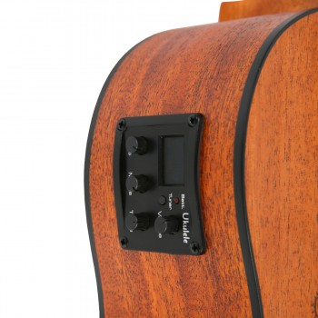 Made for live playing and recording, the Flight FU-T3 preamp brings an integrated tuner and EQ right into your hands—no need to lug extra gear. Plug in, tweak your tone, and let the Aquila Thundergut strings add tight punch and low-end clarity. Finished with bone nut & saddle, laser-engraved rosette, and smooth open-geared tuners, this bass uke plays and looks the part.