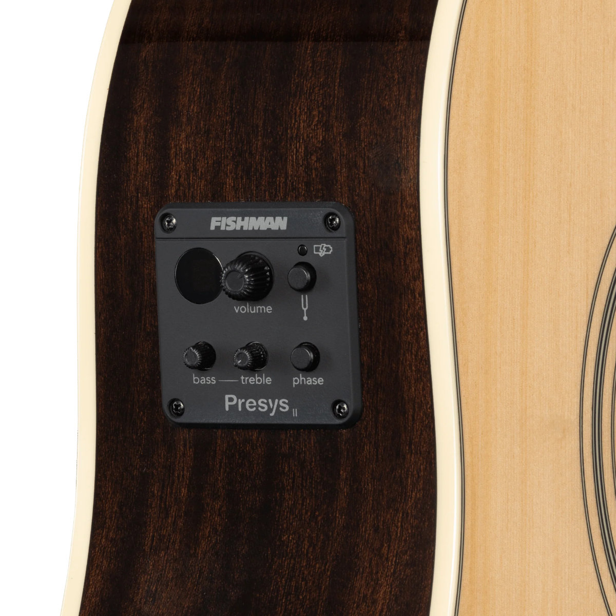 - Fishman Presys II preamp with volume, bass, treble, phase and built-in tuner