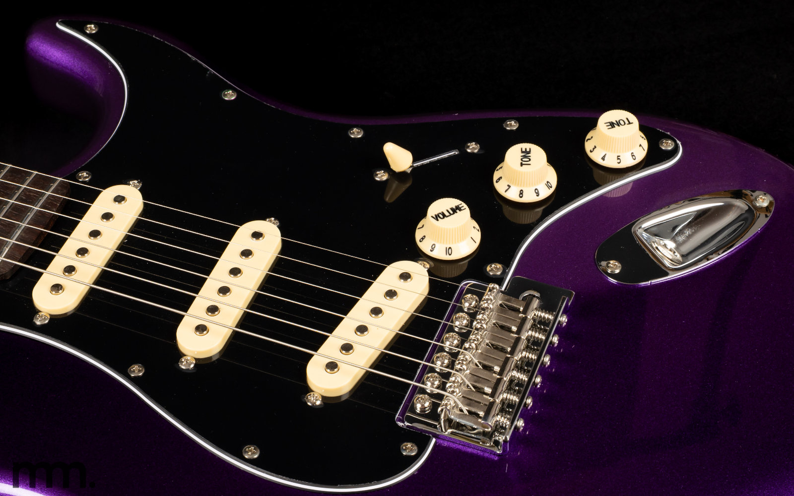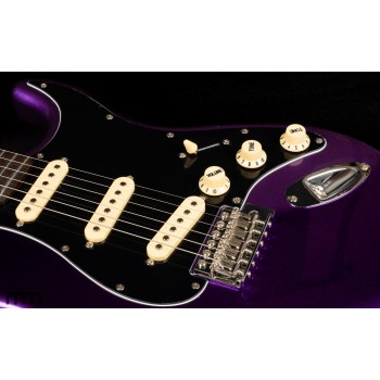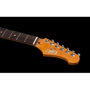 Topping the neck is a rosewood fretboard with a 9.5" radius and 22 medium jumbo frets—ideal for expressive bends, confident chord shapes, and fluid lead work. Under the strings, three single-coil pickups provide that unmistakable clarity and chime, with enough bite in the bridge position to cut through a mix and plenty of warmth in the neck for soulful melodies. The 5-way selector unlocks a wide palette of tones, from bright funk rhythms to smooth blues leads, making this an instrument that can handle whatever your setlist throws at it.