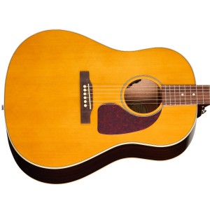 The mahogany neck features Epiphone’s comfortable slim-taper profile, making it easy to play for long sessions without fatigue, and the rosewood fingerboard is smooth under the fingers with a resonance that complements the body beautifully. Traditional touches like the slope-shoulder design, multi-ply binding, and simple but elegant rosette give the guitar timeless looks to match its tone.