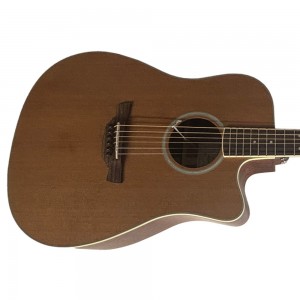 Shaped with a sloped shoulder and cutaway, the dreadnought body of this guitar is full of wonders that promise to improve playability as well as offering beautiful tonal possibilities. Crafted from mahogany, a robust and reliable wood, the back and sides focus on bringing out the lower to mid range frequencies for a stunning depth of sound that is strongly desired in an acoustic guitar. It has the ability to make your tone sound wonderfully full, an immersive quality that will undoubtedly capture anyone listening, whether you're in the studio or on stage. It is punchy, balanced, and perfect for shining overtones thanks to the emphasised midrange.