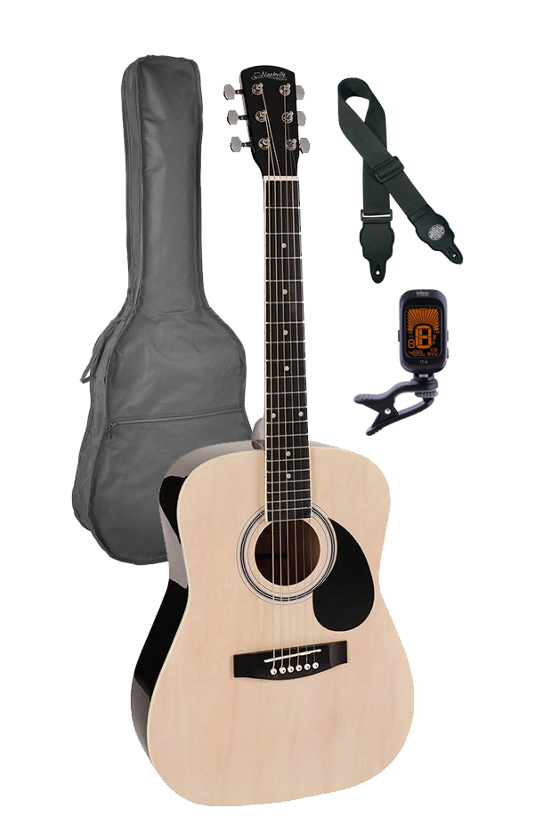 Nashville 3/4 Scale Guitar Pack - Natural with Bag, Strap & Tuner