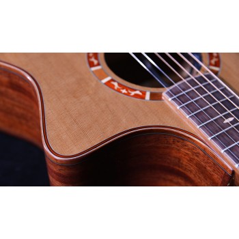 The mahogany neck paired with an ebony fingerboard provides a smooth, fast playing feel and excellent durability. A slightly wider 45 mm nut width gives players more room for fingerstyle techniques while still feeling comfortable for strumming.
