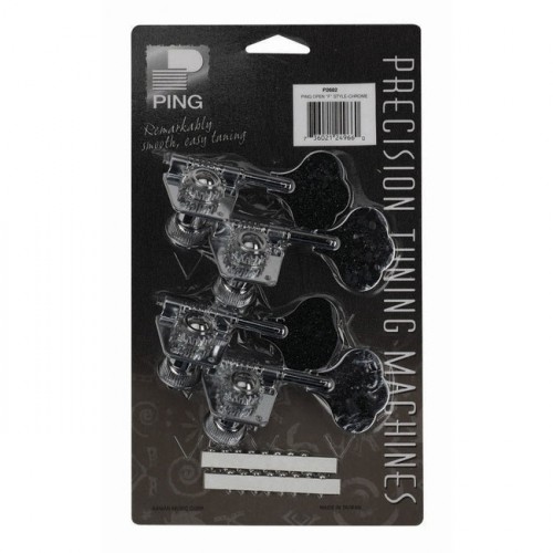 Ping’s replacement for the most popular styled electric bass. Open gears, heavy construction, 1/2” posts, and polished, high quality plating. Supplied 4-in-line. Available in three finishes. Set of four. (10/box). 4-left/chrome.