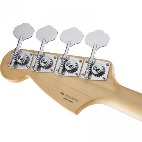 In a nod to its roots, this modernized instrument includes vintage-style Fender tuning machines and a vintage-style disc string tree, along with a four-bolt neck plate and standard four-saddle string-through-body bridge—all finished in gleaming chrome. A classic instrument, upgraded with features for the modern bassist, the short-scale Mustang Bass PJ is sure to please with its flexible sound, easy playing feel and slick style.