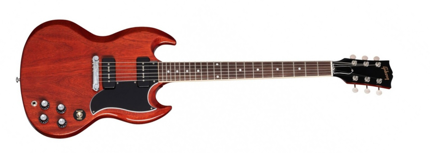The SG™ Special harkens back to its iconic design, celebrated for shaping sound across generations and genres. With its early '60s style, this guitar exudes the vibe and tone heard on countless classic rock tracks. Featuring a SlimTaper™ mahogany neck and bound rosewood fingerboard, it offers effortless playing and comfort. Equipped with two P-90 pickups, renowned for their versatile sonic range, the SG Special boasts hand-wired controls with Orange Drop® capacitors and a 3-way toggle switch for dynamic tonal exploration. The P-90s deliver bright, punchy tones coveted by musicians across rock, country, jazz, and punk genres. Coupled with a slim taper neck design, the guitar ensures seamless fretboard navigation and enhanced playability. With its rosewood fretboard and medium jumbo-sized frets, the SG Special offers superb sustain and effortless pitch bends, inspiring players to reach new creative heights.