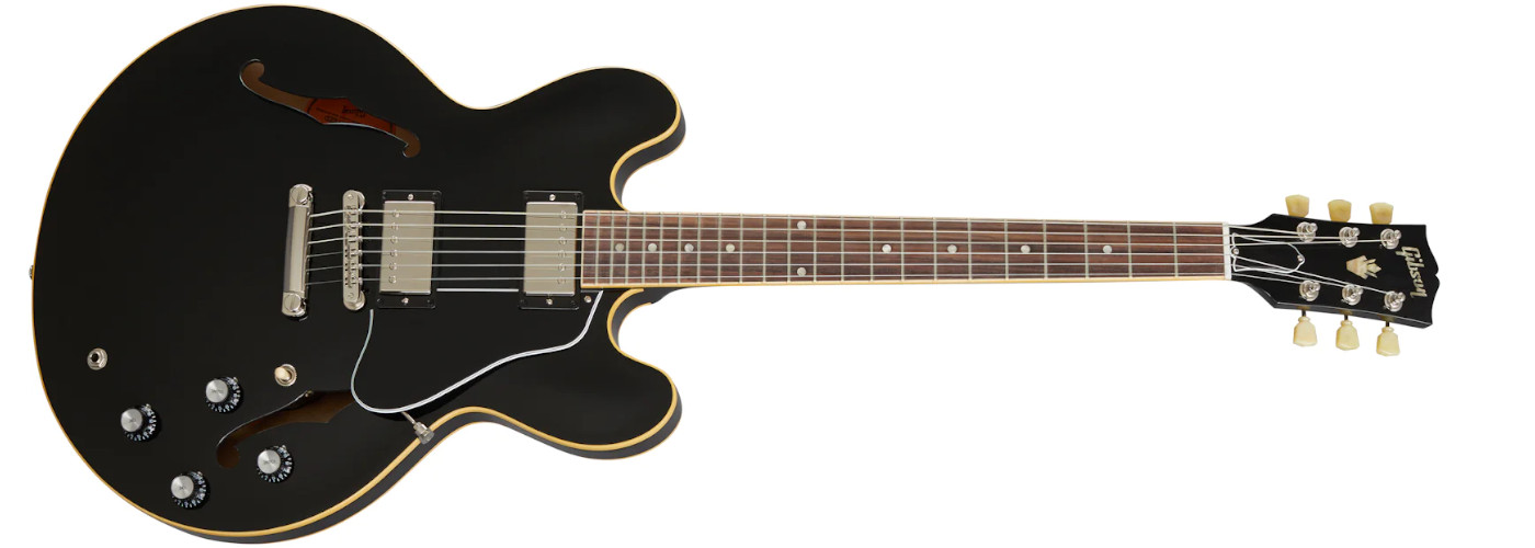 Fitted with Gibson's Calibrated T-Type humbucking pickups and handwired control assembly, the ES-335 delivers the versatile tonal palette that has enraptured guitarists for generations. Vintage Deluxe tuners, an aluminium ABR-1 bridge, and Stopbar tailpiece guarantee precise intonation and steadfast tuning stability. Meticulously fashioned from premium tonewoods, including a 3-ply maple/poplar/maple top and back, a solid maple centre block, and a mahogany neck, the ES-335 exudes exceptional resonance and sustain. Its T-Type humbuckers emit legendary tones, offering a wide spectrum of sonic possibilities ranging from pristine chiming notes to ferocious distortion. Engineered for comfort and ease of play, the ES-335 features a rounded "C" neck profile and Plek’d frets for optimised playability, ensuring a fairly transcendent playing experience for guitarists of all genres.
