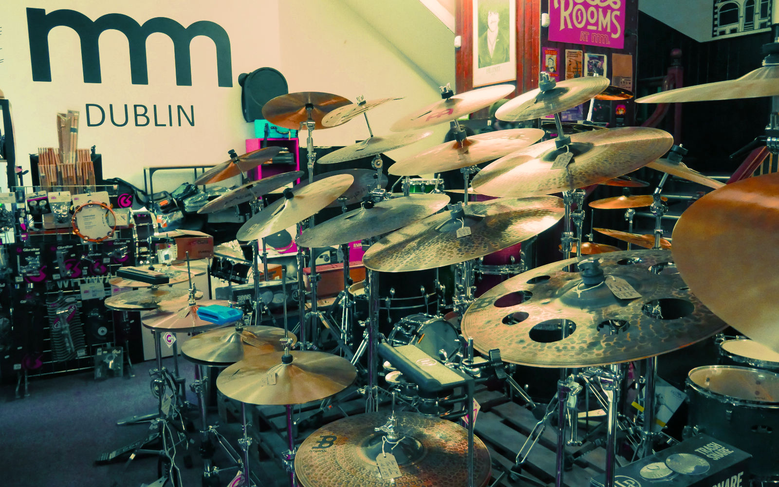 Musicmaker is a fine place to be if you happen to be a drummer, or even if you’re not, but merely someone who enjoys wandering into shops and hitting things to see what noise they make. It has, however, just become significantly finer. A shipment of Stagg cymbals has arrived. A shipment so grand, so resplendent in its metallic shimmer, that it might, in fact, be mistaken for the rapture.