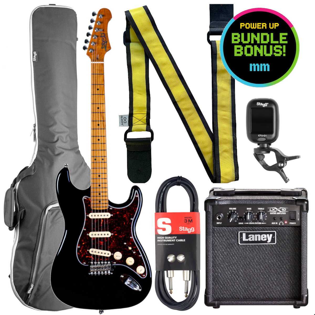 - Jet Guitars JS-300 BK Roasted Maple – Black: Classic S Style body with roasted maple neck for a smooth feel, responsive tone, and modern reliability.