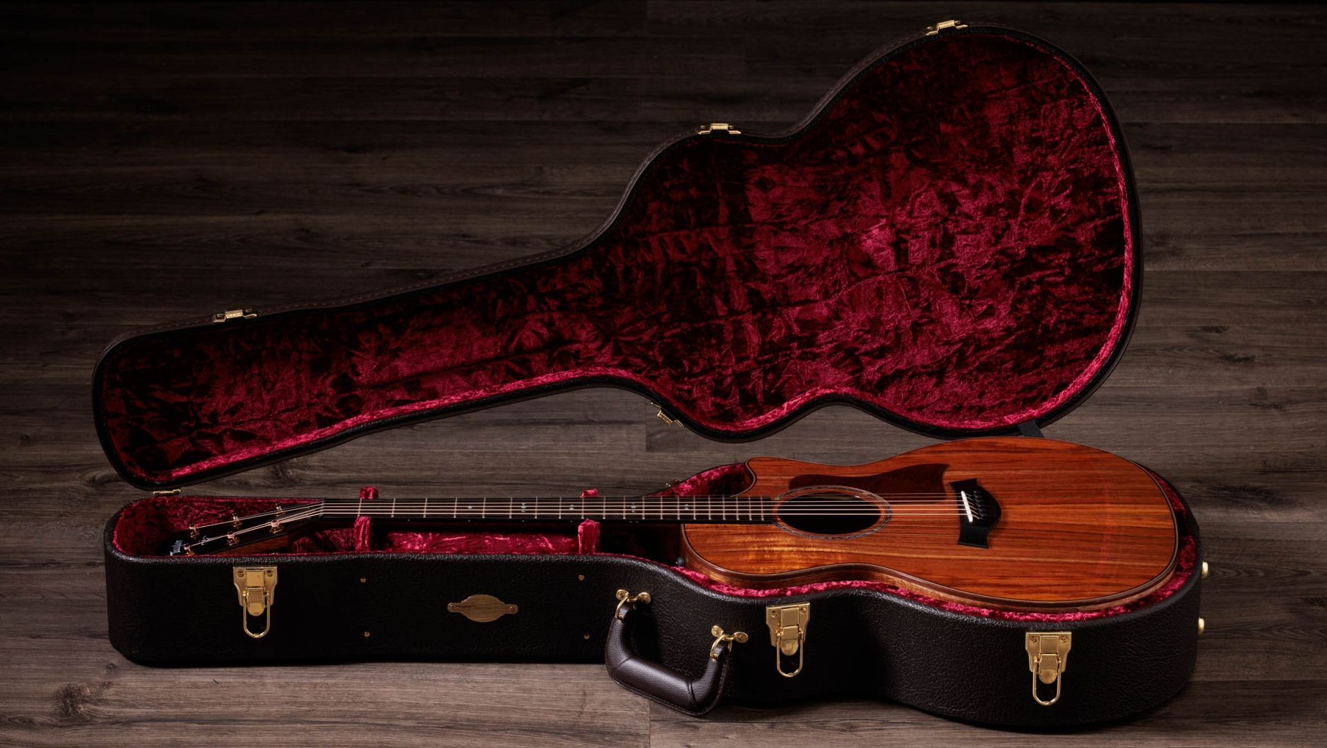 The air is thick with anticipation. The lights dim. Two immaculate silhouettes stand side by side — gleaming, glorious, waiting. On one side, the Taylor 724ce Koa – Gloss Natural: radiant, exotic, and unapologetically vibrant. On the other, the Taylor Legacy 714ce – Western Red Cedar and Indian Rosewood: elegant, earthy, steeped in heritage and grace.