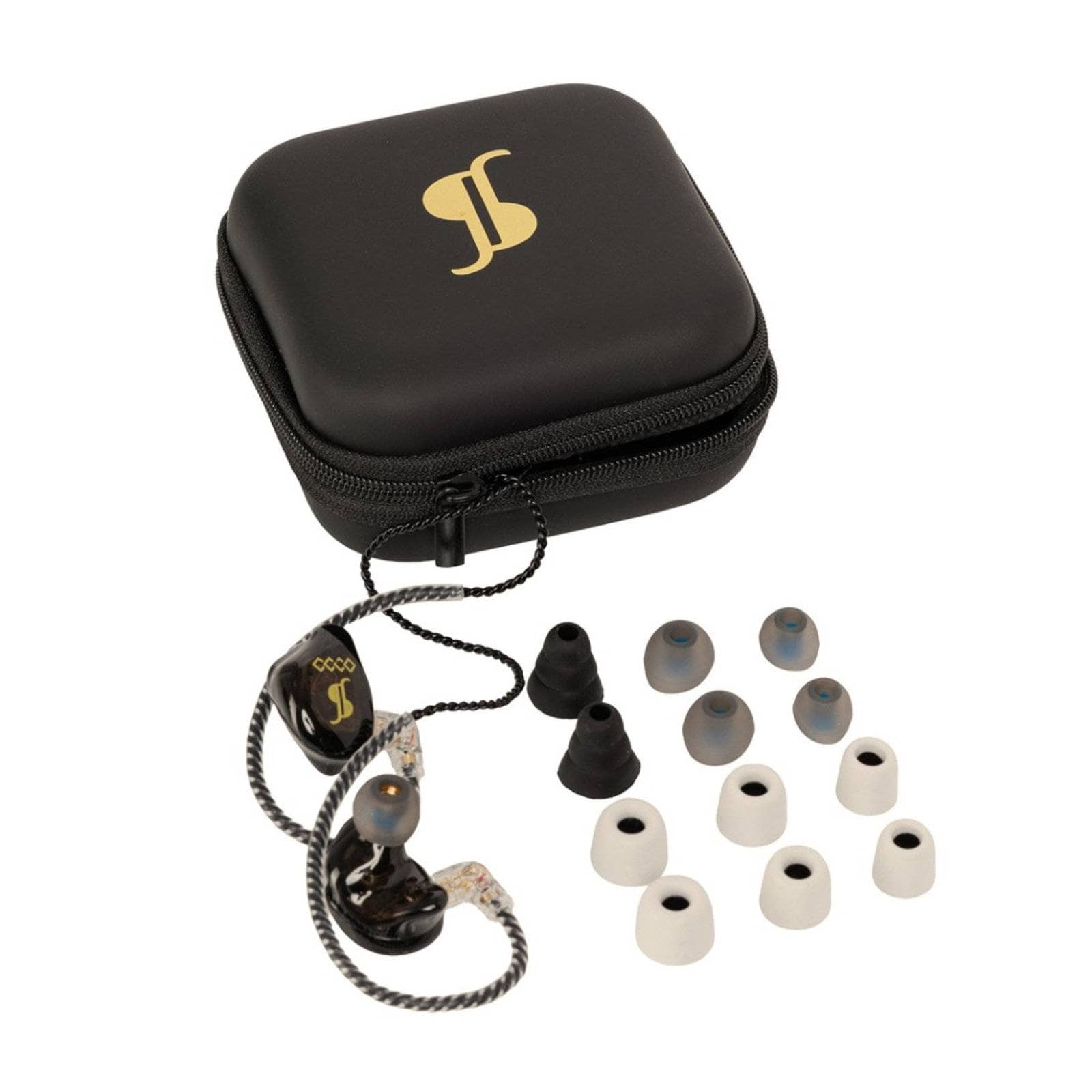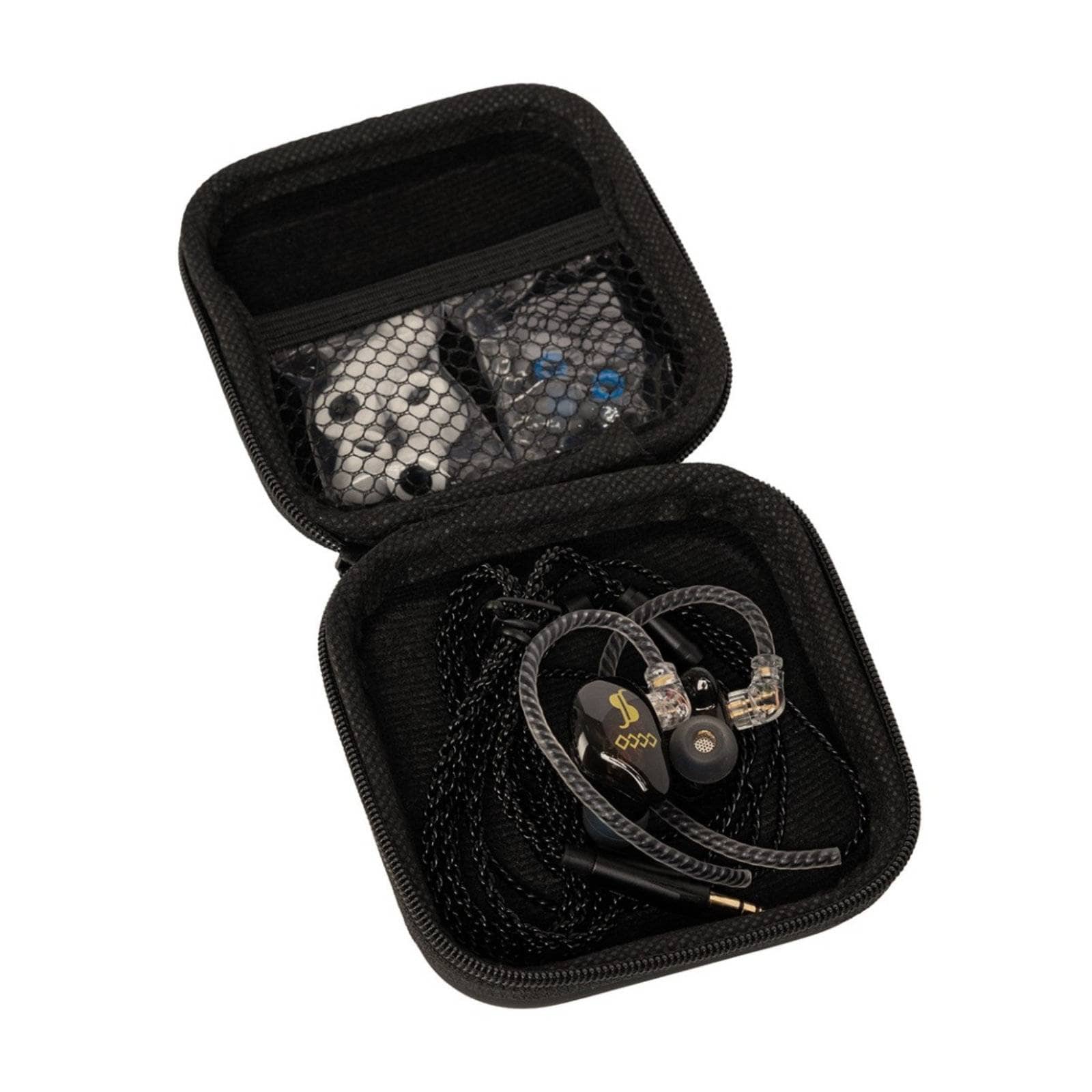 Build-wise, they come with a rotatable ear-hook design that helps the monitors stay secure in your ear, memory-foam tips (3 sizes) and rubber tips (2 sizes) so you can dial a perfect fit, and a durable EVA foam case for transport. In this gold/black limited edition, the outer shell colour is stylishly contrasted, giving them both premium looks and stage readiness.