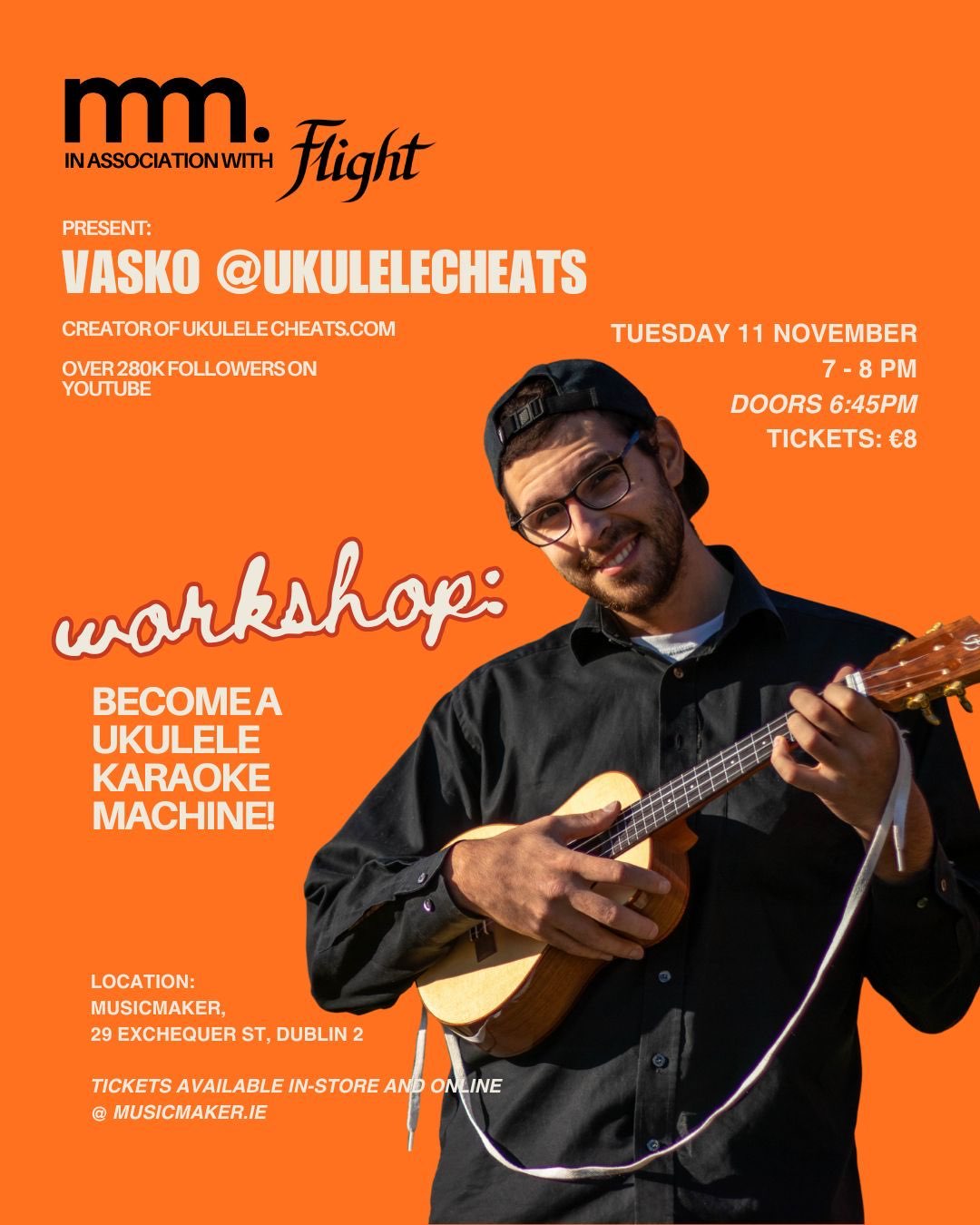 Join Vasko — the creator of UkuleleCheats.com and the internet’s favourite ukulele wingman — for an inspiring, laugh-filled, and hands-on workshop right here in Musicmaker.