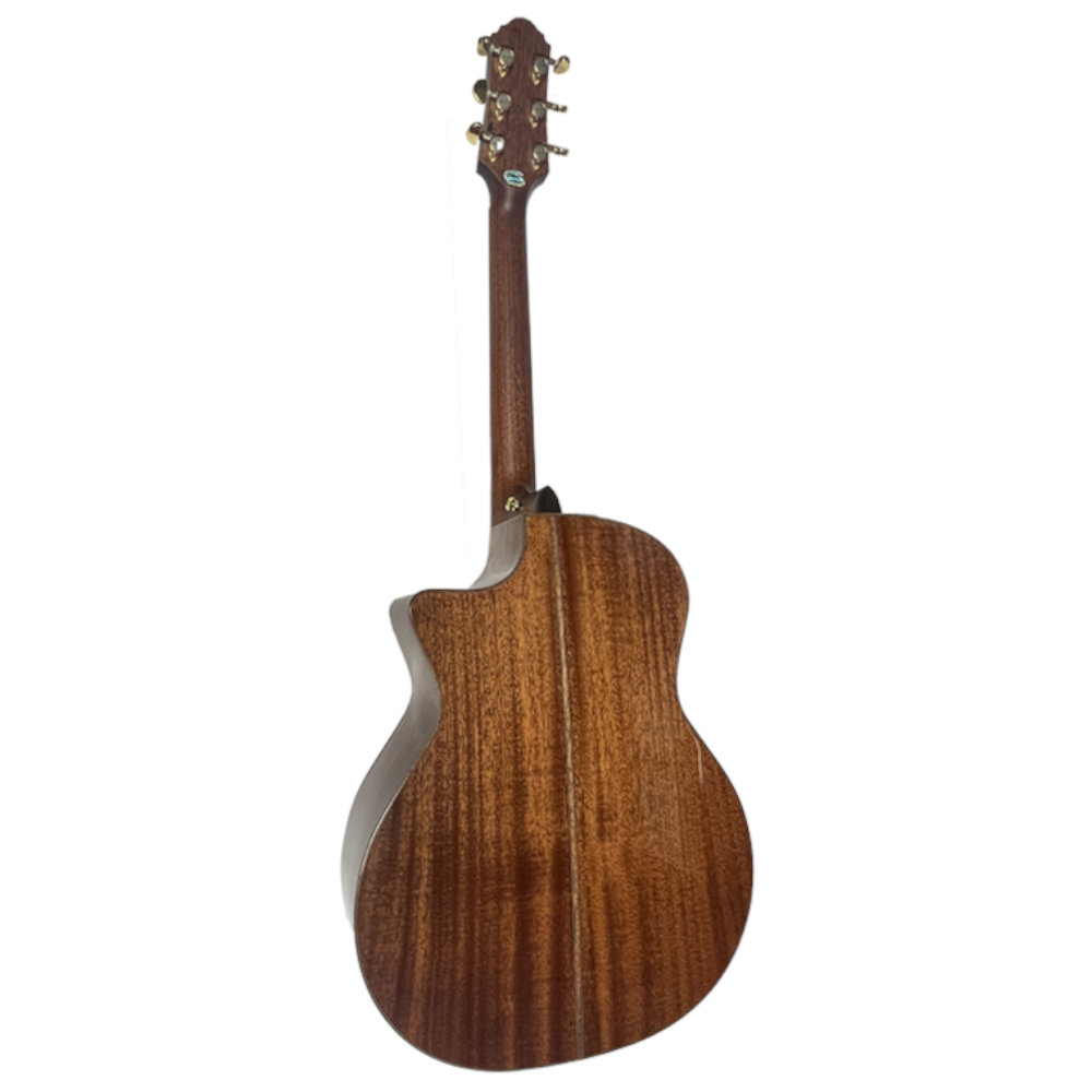 Its Grand Auditorium body shape sits comfortably between a dreadnought and smaller-bodied acoustic, offering strong projection while remaining comfortable to hold. The cutaway design allows smooth access to the upper frets, making it a great choice for players who enjoy melodic leads and expressive playing further up the neck.