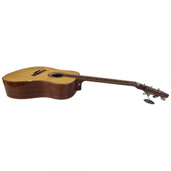 Playability is smooth and comfortable thanks to the African Mahogany neck and Indian Rosewood fingerboard, offering a natural feel under the fingers and excellent durability. The 43 mm nut width and full 648 mm (25.5") scale length provide a familiar playing experience for most acoustic players.
