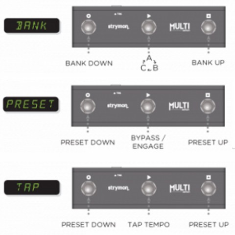 Please note: Firmware update may be required on your TimeLine, BigSky, or Mobius to enable the Expression Modes compatible with MultiSwitch.  A MIDI to USB cable is required for the update.  Visit strymon.net/update for more information.