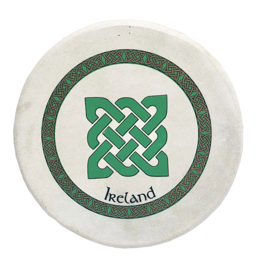 Finished in a natural wood tone, this model features a striking Green Square Celtic Knot design, adding a bold touch of traditional Irish symbolism. While small in size, it produces a bright, focused tone that’s ideal for light rhythmic accompaniment and early learning.