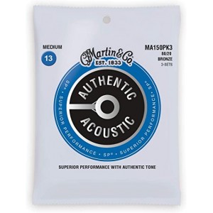 Martin MA150PK3 Authentic Acoustic SP Strings, 80/20 Bronze Medium (.013-.056) - 3-Pack