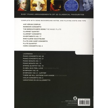 Easy piano arrangements of 22 classical favourites by Mozart. Complete with song background notes and playing hints and tips.
