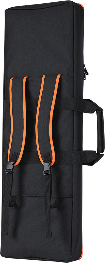 Transport options are flexible: carry it by the cushioned top handle or switch to hideaway padded backpack straps for comfortable hands-free movement. The large front pocket is perfect for stashing cables, the GO:KEYS music rest, power supplies, and music sheets—helping to keep gear organised on the road.