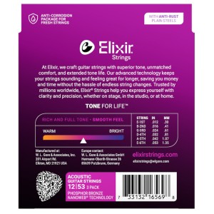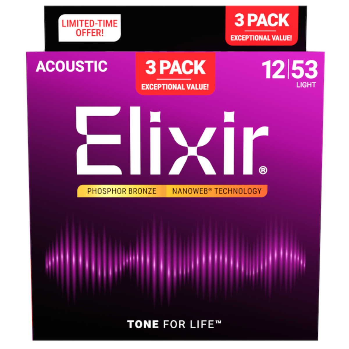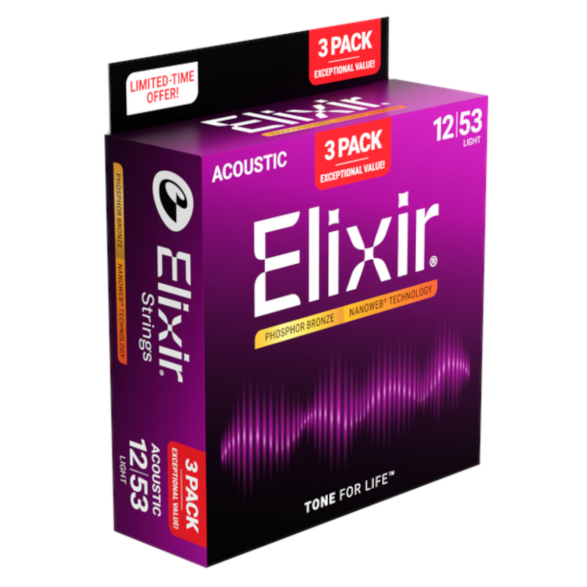 - 3-pack of Elixir 16569 Acoustic Nanoweb Phosphor Bronze strings