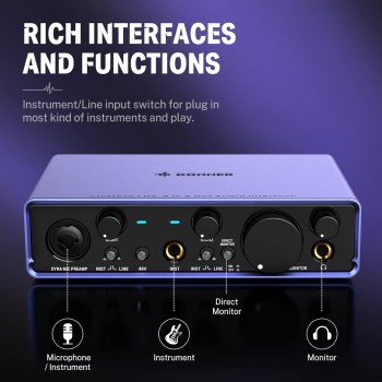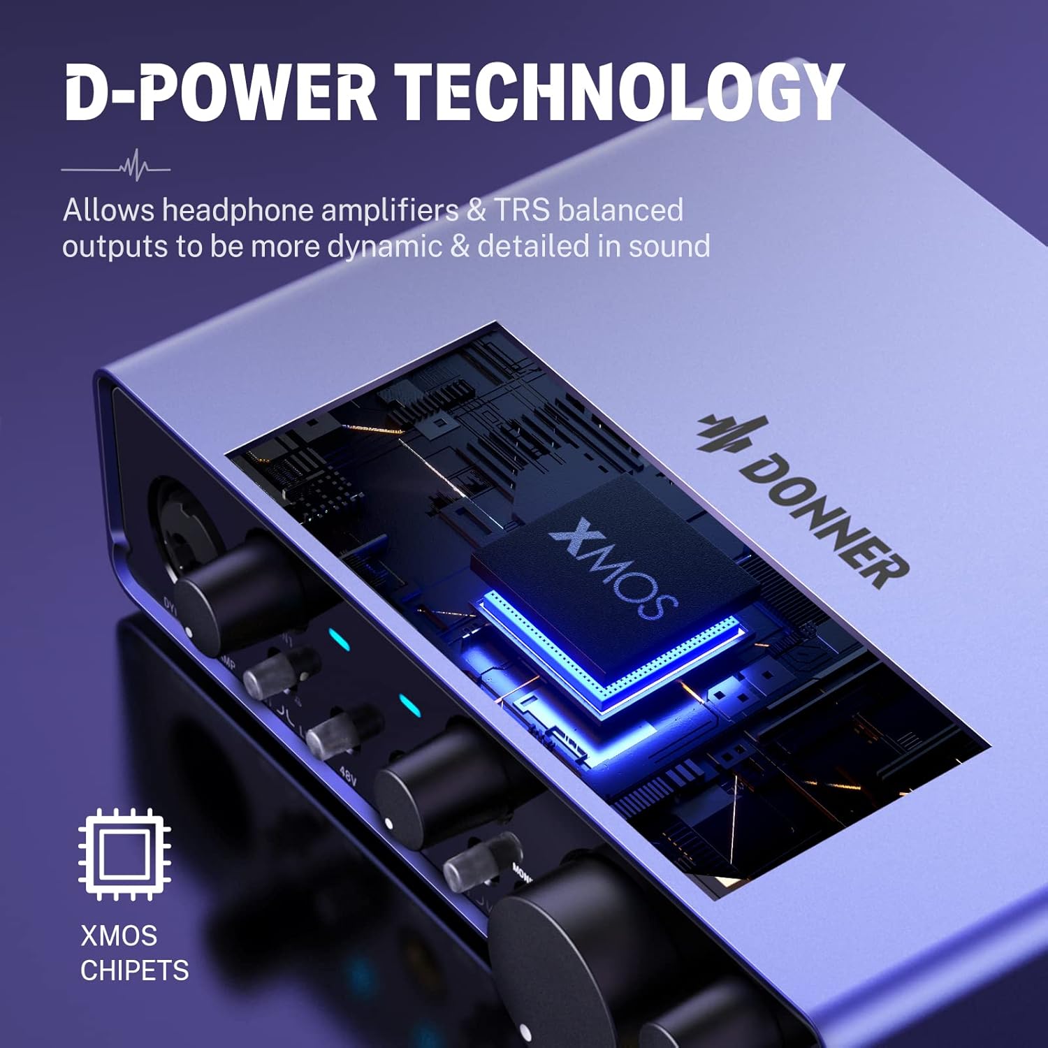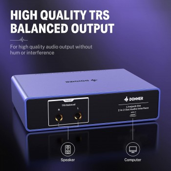 This single-channel interface offers high-quality 24-bit audio, ensuring your instruments and microphones are captured with clarity and detail. The combo input accommodates both XLR microphones and line/instrument sources, making it ideal for singer-songwriters, guitarists, podcasters and voice-over artists. Thanks to Donner’s improved preamp design, you get low noise, plenty of gain and a crisp, natural sound that sits well in any mix.