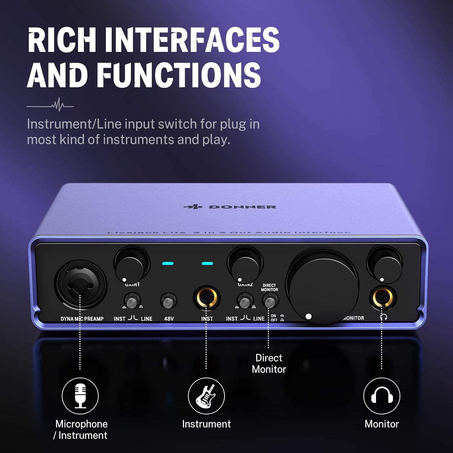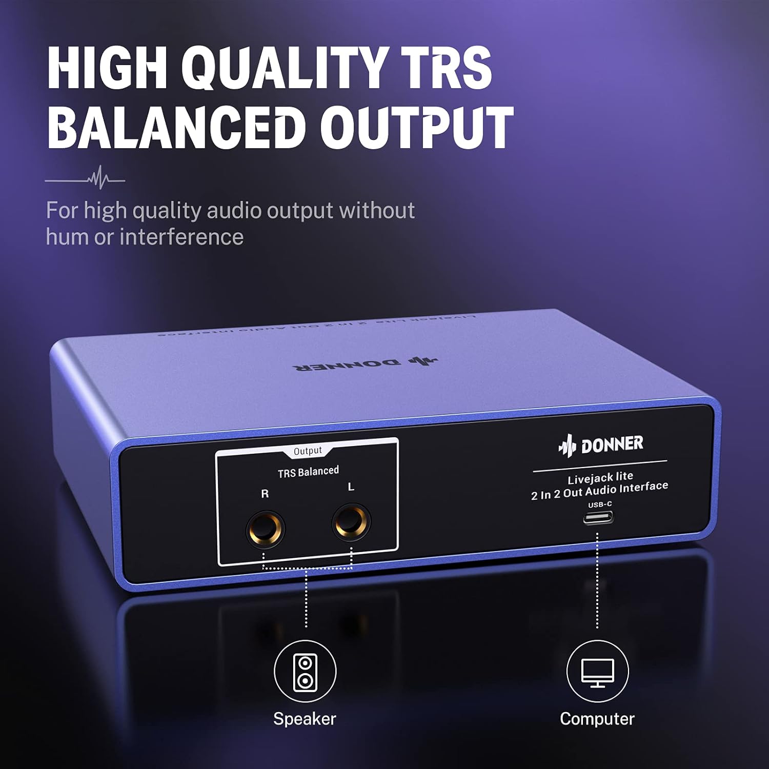 The Donner Livejack Solo is a compact, easy-to-use audio interface designed for musicians and creators who want clean recordings without the fuss. Whether you’re laying down guitar tracks, recording vocals, building your first home studio or streaming live, the Livejack Solo delivers solid, reliable performance in a sleek desktop-friendly format.
