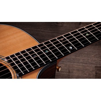 Step into something timeless yet contemporary with the Taylor Legacy 714ce. At its heart you’ll find a solid Western Red Cedar top—a tonewood choice that responds exquisitely to light touch and fingerstyle work, offering warmth and richness without sacrificing definition. Paired with select Indian Rosewood back and sides, the result is a full‑spectrum voice: deep lows, sparkling highs, and lush sustain that feels both luxurious and alive.