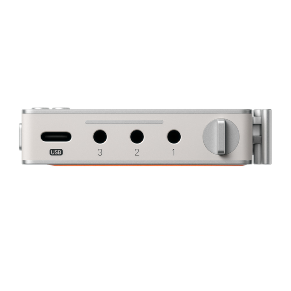 The TP-7 is equipped with three stereo two-way jacks that serve as versatile inputs or outputs, allowing seamless connections to external microphones, headphones, studio monitors, or other audio equipment such as the OP-1 field or TX-6, facilitating recording with all six stereo channels. The device utilizes USB-C for multi-channel audio interface, MIDI, data transfer, and charging, while BLE and MFi ensure wireless connectivity. Additionally, the TP-7 includes a 6.35mm to 3.5mm jack adapter for added convenience. With an impressive 128 GB of internal storage, you can preserve up to 5 minutes of ideas per day for an astonishing 20 years.